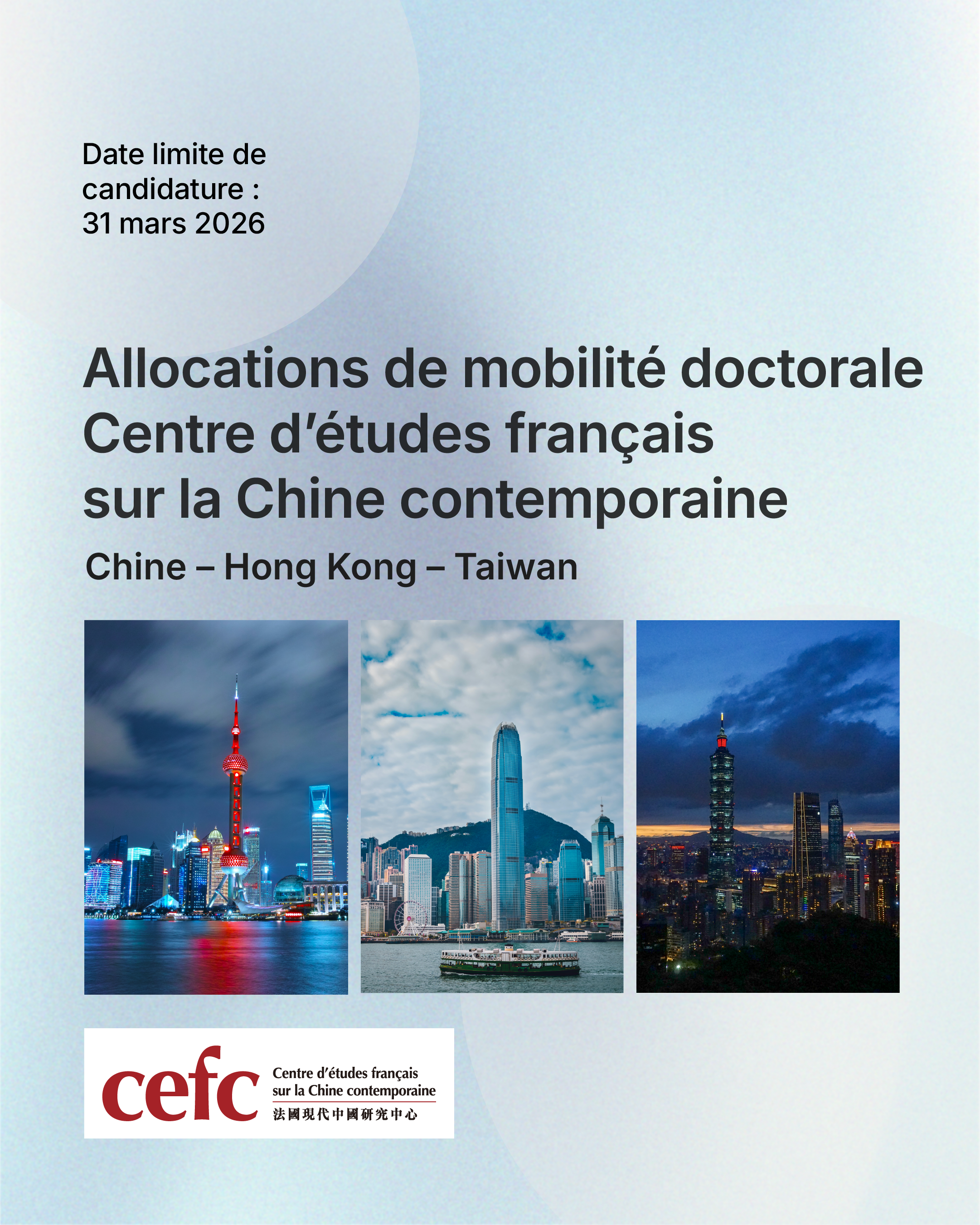 En 2026, le Centre d’études français sur la Chine contemporaine (CEFC) propose des allocations de mobilité pour doctorant·e·s qui souhaitent mener une recherche de terrain en Chine, à Hong Kong ou à Taïwan.